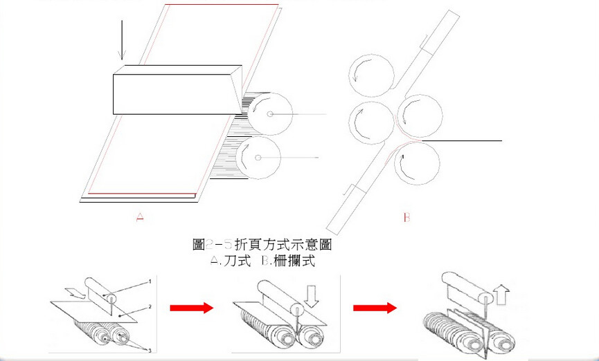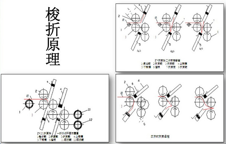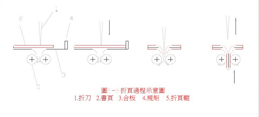 利用閘刀將紙張壓入一對旋轉(zhuǎn)的折書輥之間﹐完成折書。